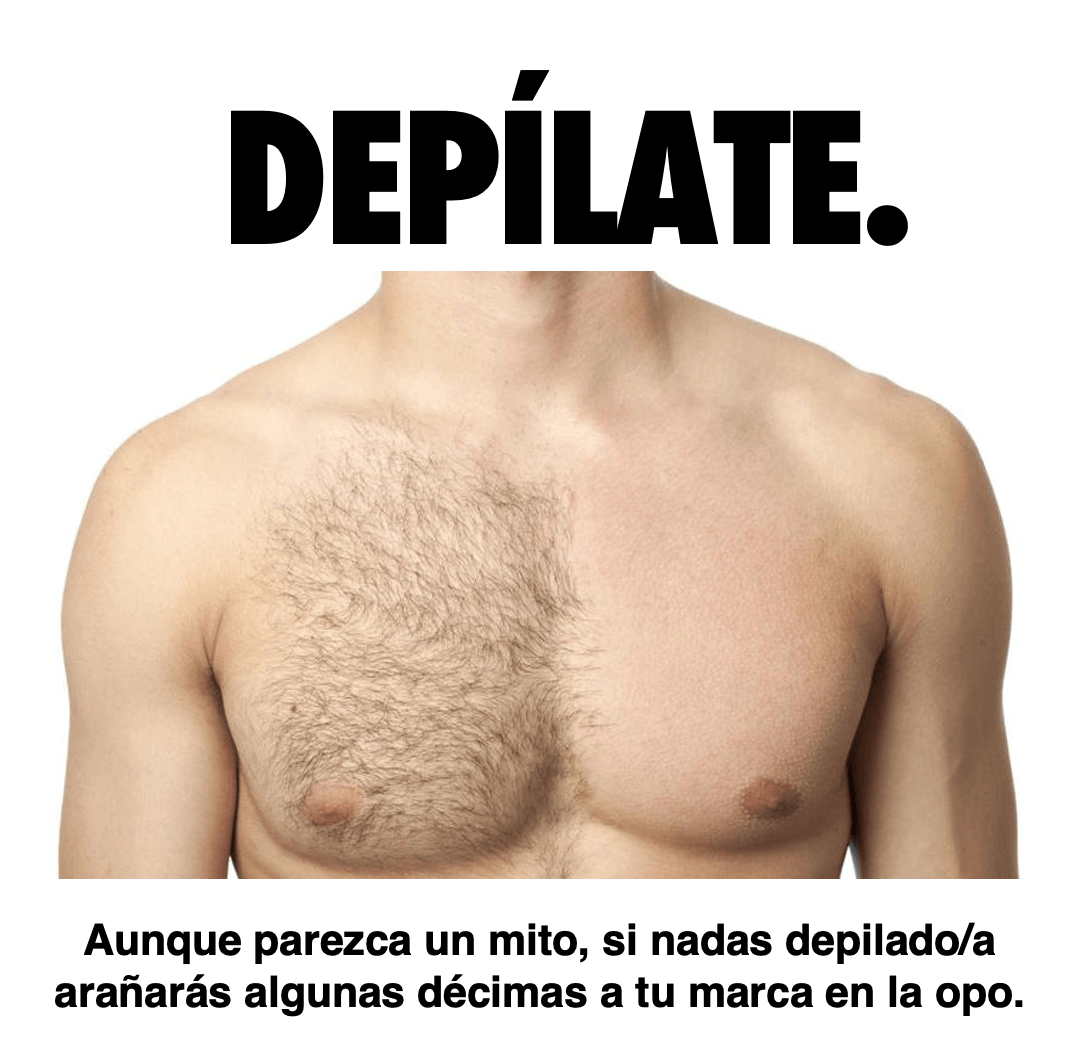 La fricción depende en gran medida de la rugosidad de un objeto (o cuerpo) bajo el agua. Cuando más liso sea, menor fricción y por tanto menor resistencia ofrecerá durante el desplazamiento. En este sentido, no podrás modificar tu piel para que tenga menos fricción, pero depilándote sí mejorarás la resistencia al avance.